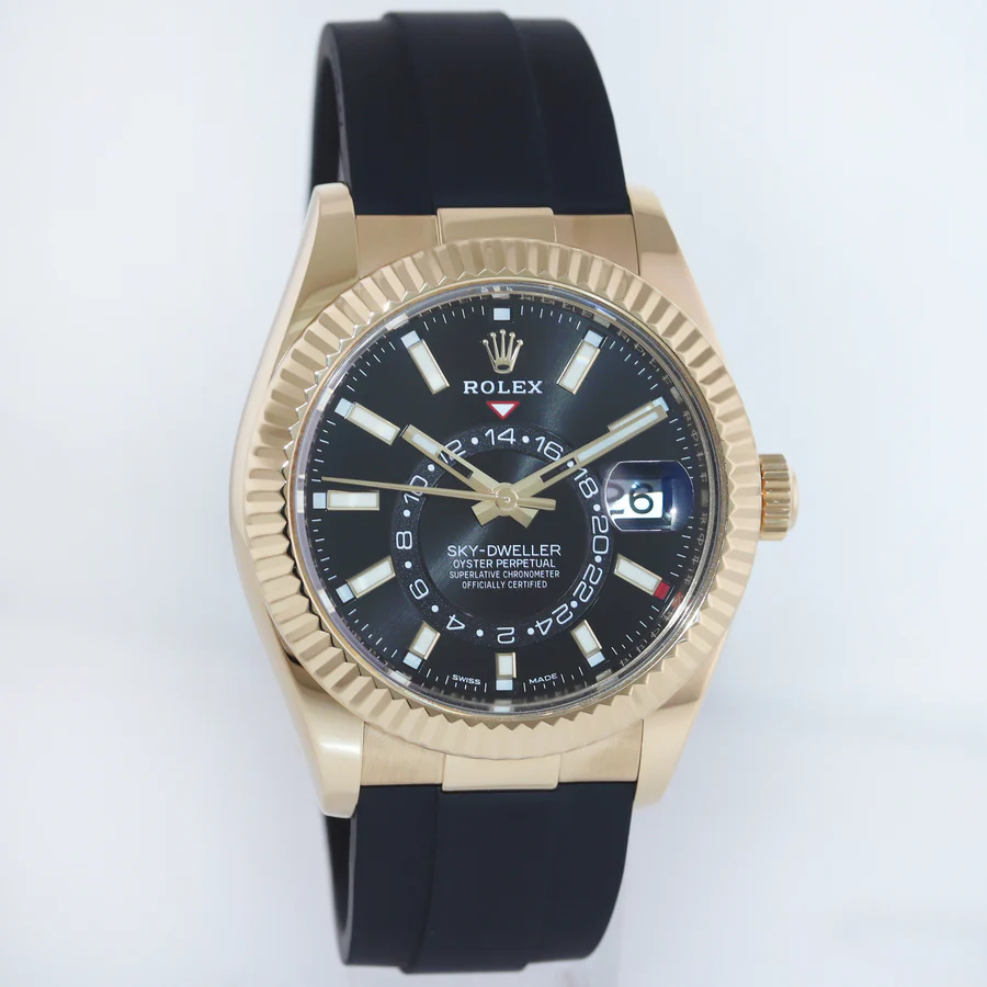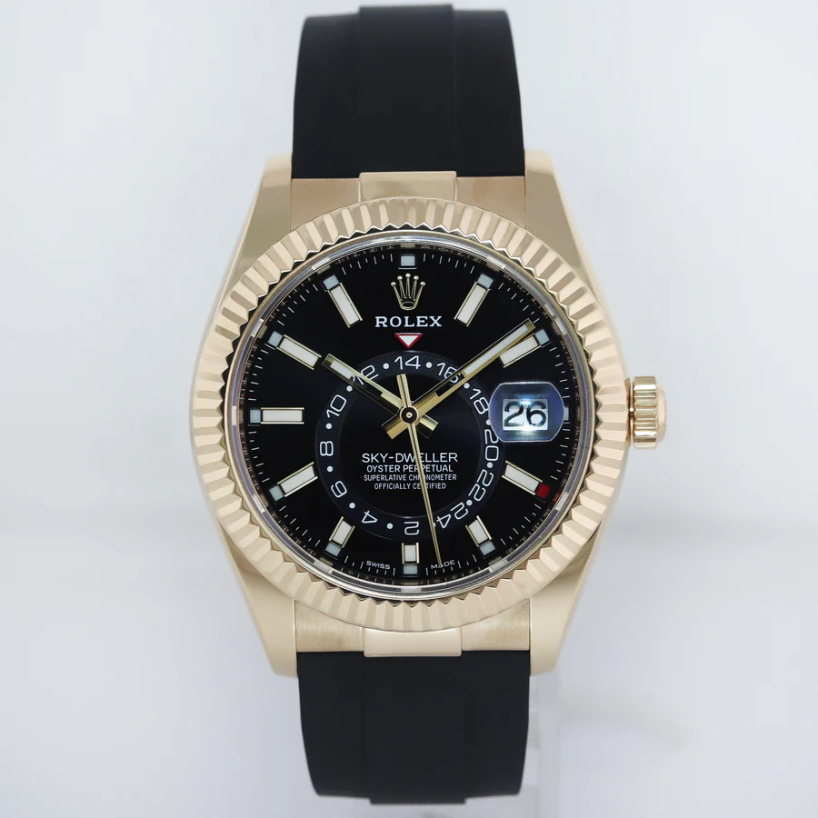 2021 MINT Rolex Sky-Dweller Yellow Gold Black Oysterflex 326238 Watch Box