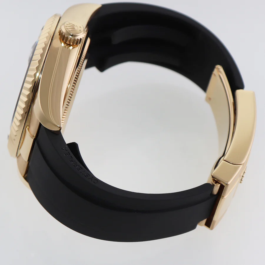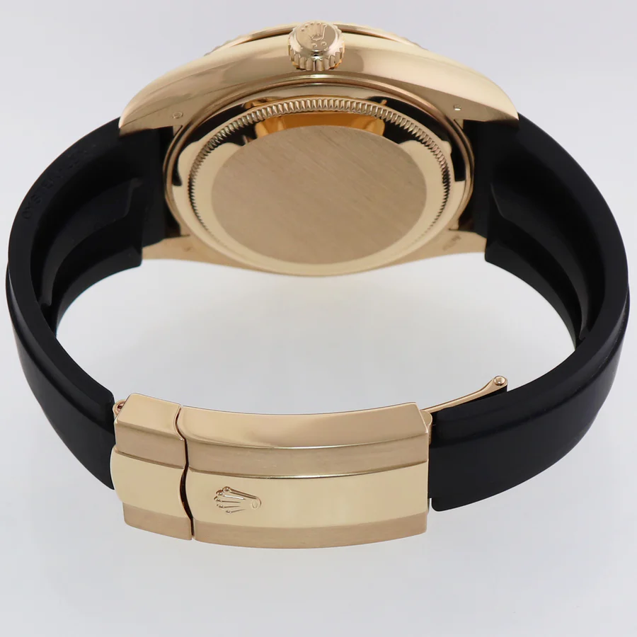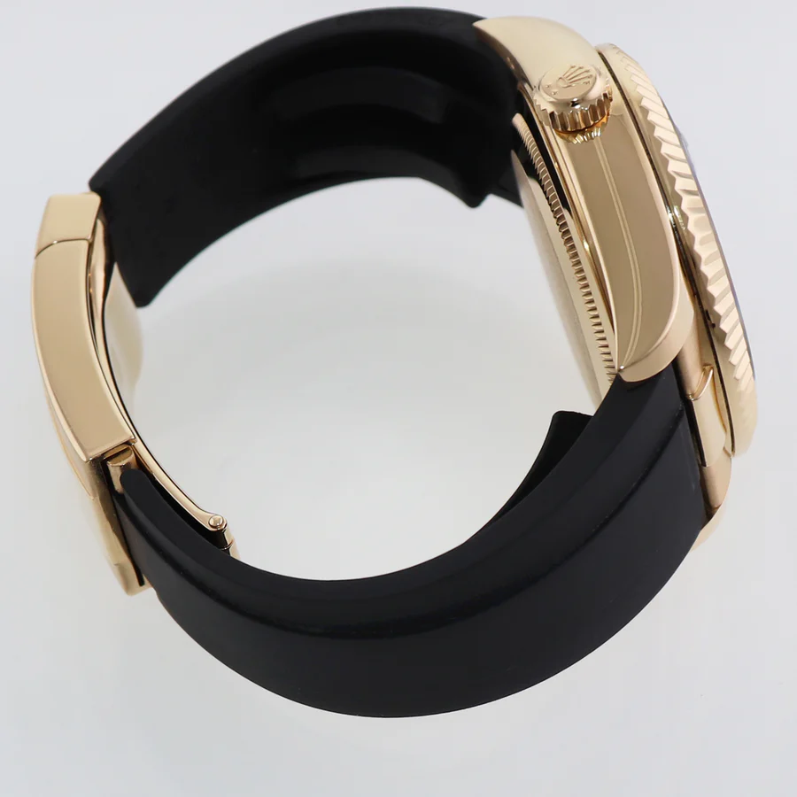 | Band | Rolex Yellow Gold Clasp with Black Oysterflex Rubber and with a Flip Lock easylink extension Deployment Clasp |