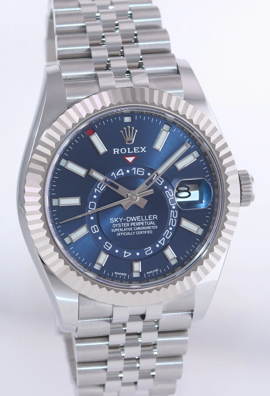 2021 NEW PAPERS Rolex Sky-Dweller Steel BLUE Jubilee Fluted 42mm 326934 Watch Box