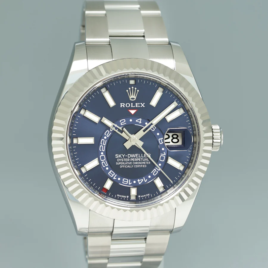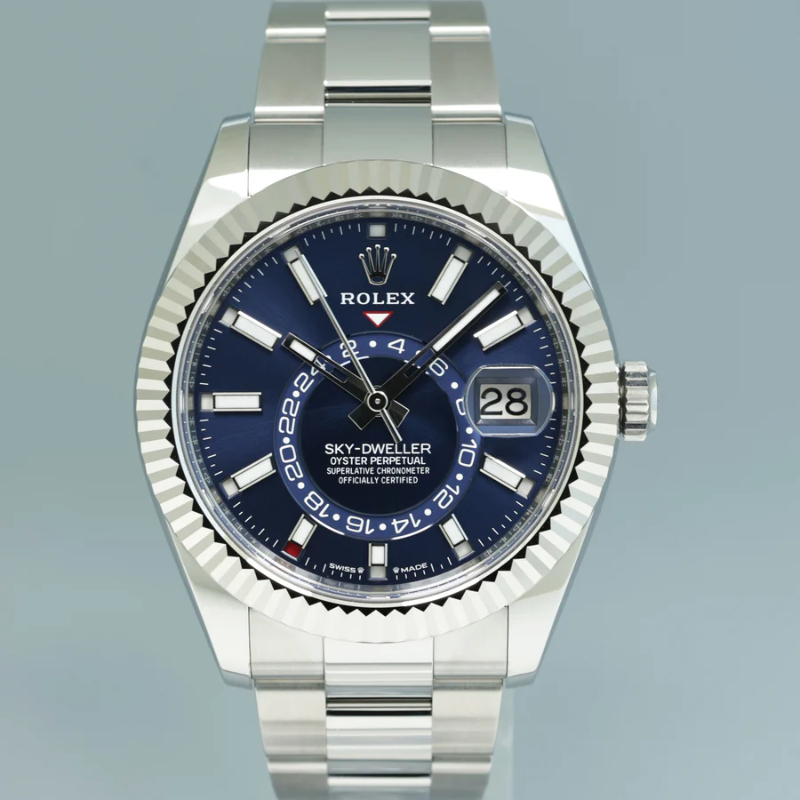 2024 NEW Rolex Sky-Dweller 336934 Steel Blue 42mm Oyster Fluted Watch Box