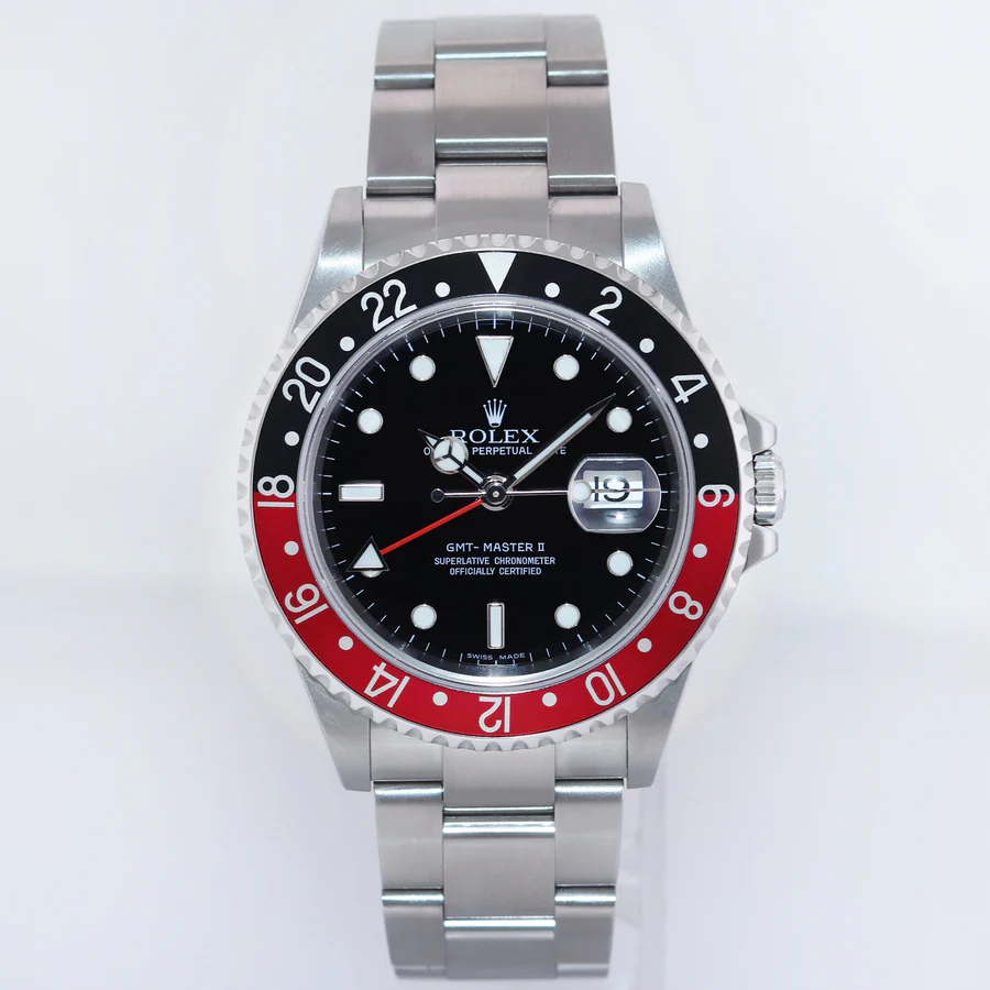 | Dial | Rolex Black Index Dial with date at the 3 o’clock and a Red 24-hour GMT hand |