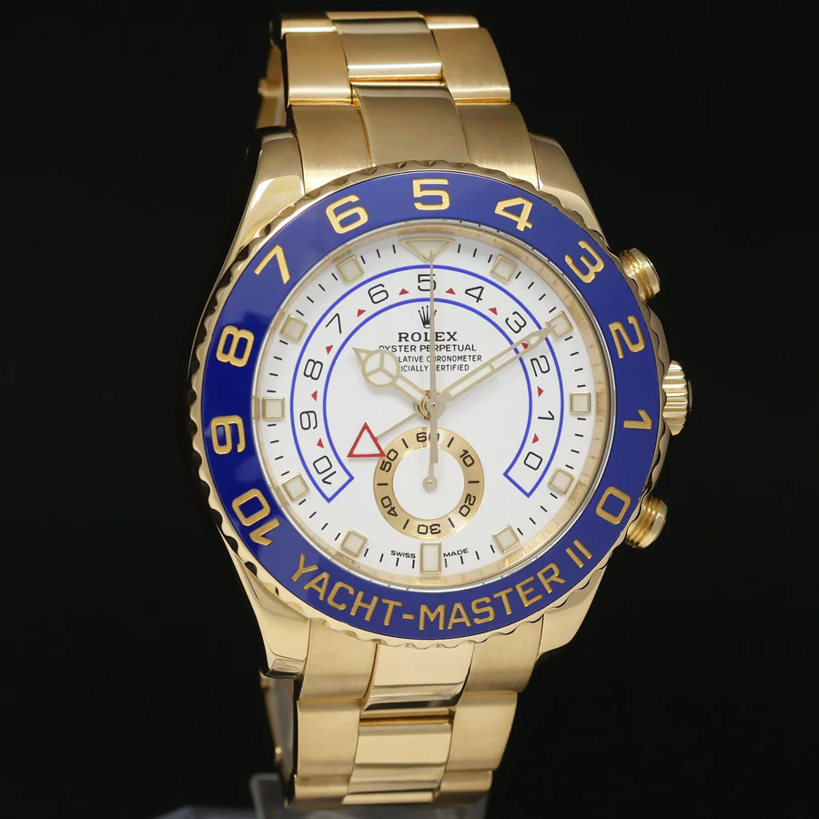 | Bezel | Rolex Yellow Gold with a blue ceramic (cerachrom bezel) |
